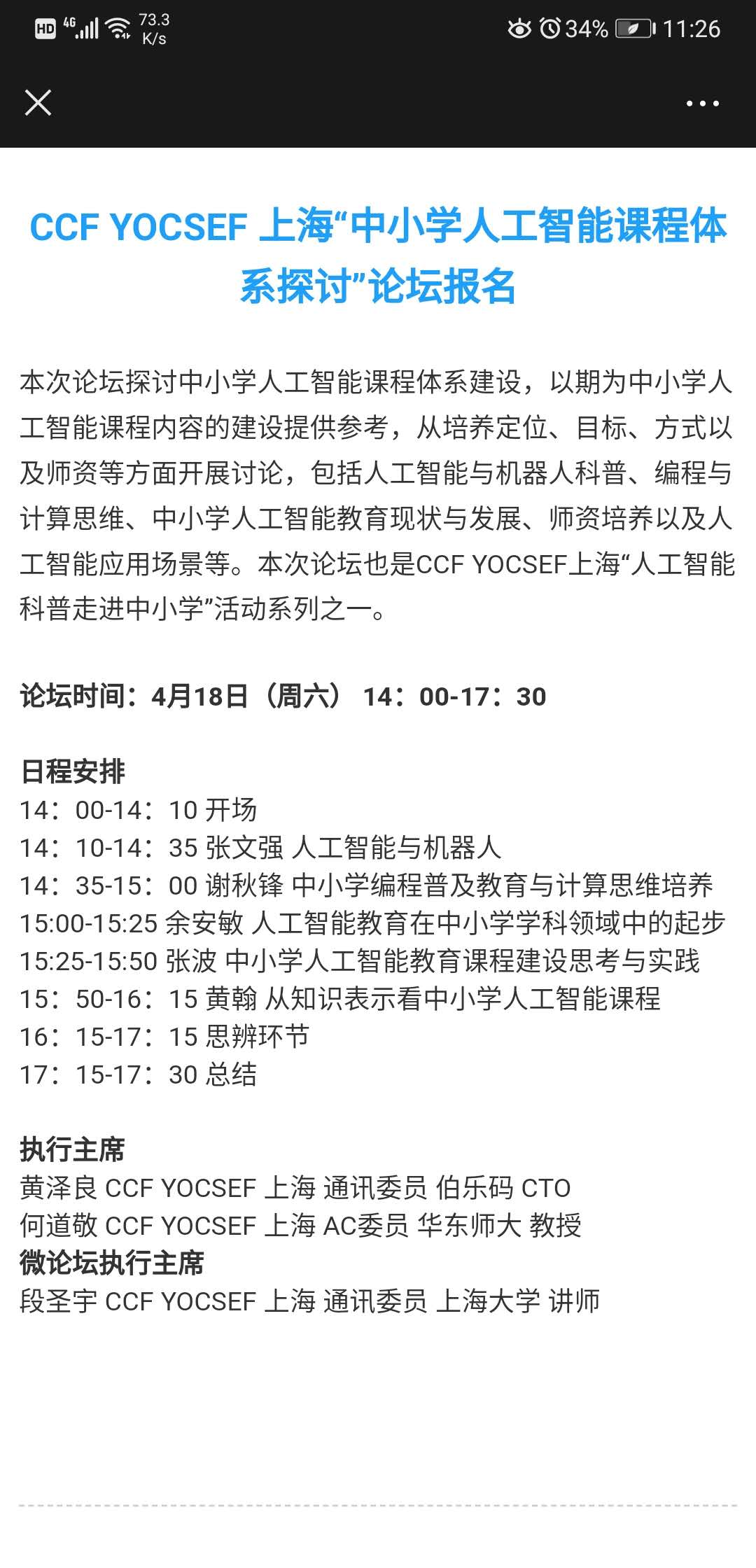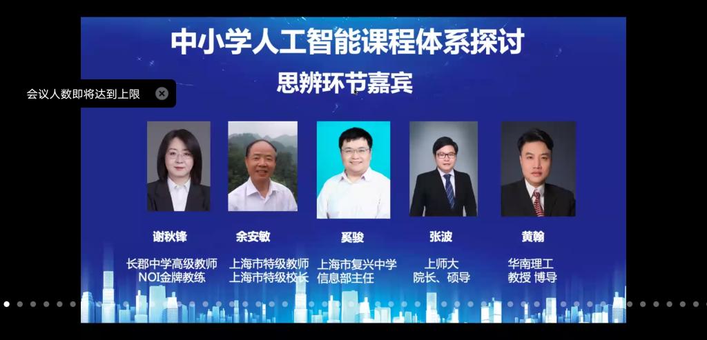 2020年4月18日,由中国计算机学会青年计算机科技论坛主办的“中国中小学人工智能课程体系研讨”会议通过网络在线举行。该会议主要探讨中小学人工智能课程体系建设、培养定位、师资培训、机器人科普、编程与计算思维培养等问题。在会议上作报告的有复旦大学智能机器人研究院副院长张文强教授、CCF杰出演讲者、中学高级教师谢秋锋老师等多位从事人工智能研究与人工智能基础教育的专家学者。JBO体育