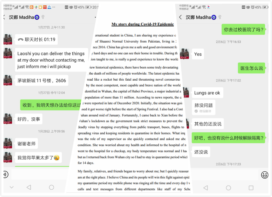 安排专人,先后6次为其购买生活物资并送到学生所在小区。学生导师以认真负责的态度,每天与学生通过网络交流,关注学生身心健康。14天隔离期满后,学生因身体原因延长隔离7天,JBO体育