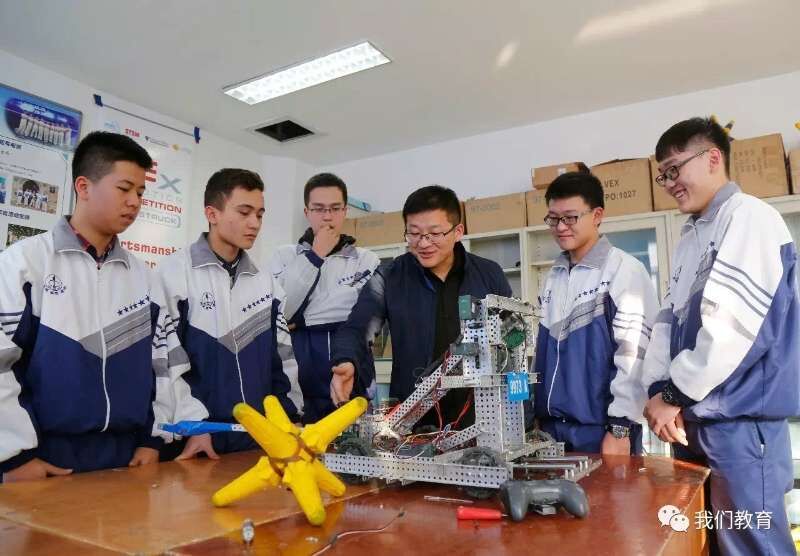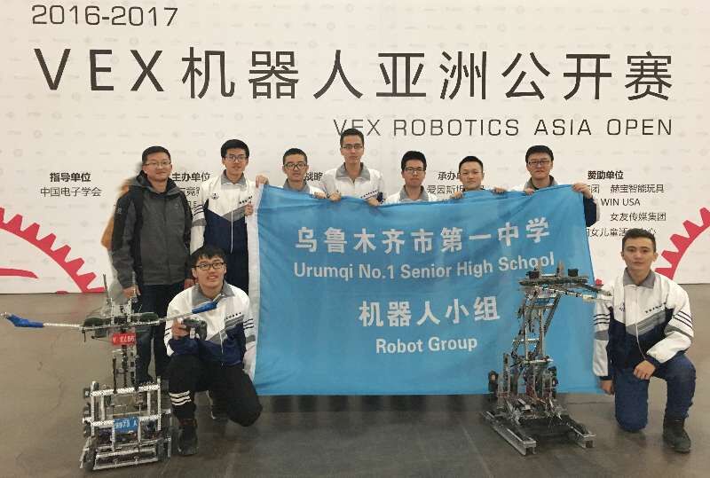 在新疆乌鲁木齐第一中学的人工智能兴趣课上,一场机器人篮球对抗赛正在进行。学生们聚精会神,用指令操控着机器人,走位、防守、投球、得分……正是这个团队曾在VEX世界机器人锦标赛高中组比赛中捧回大奖。