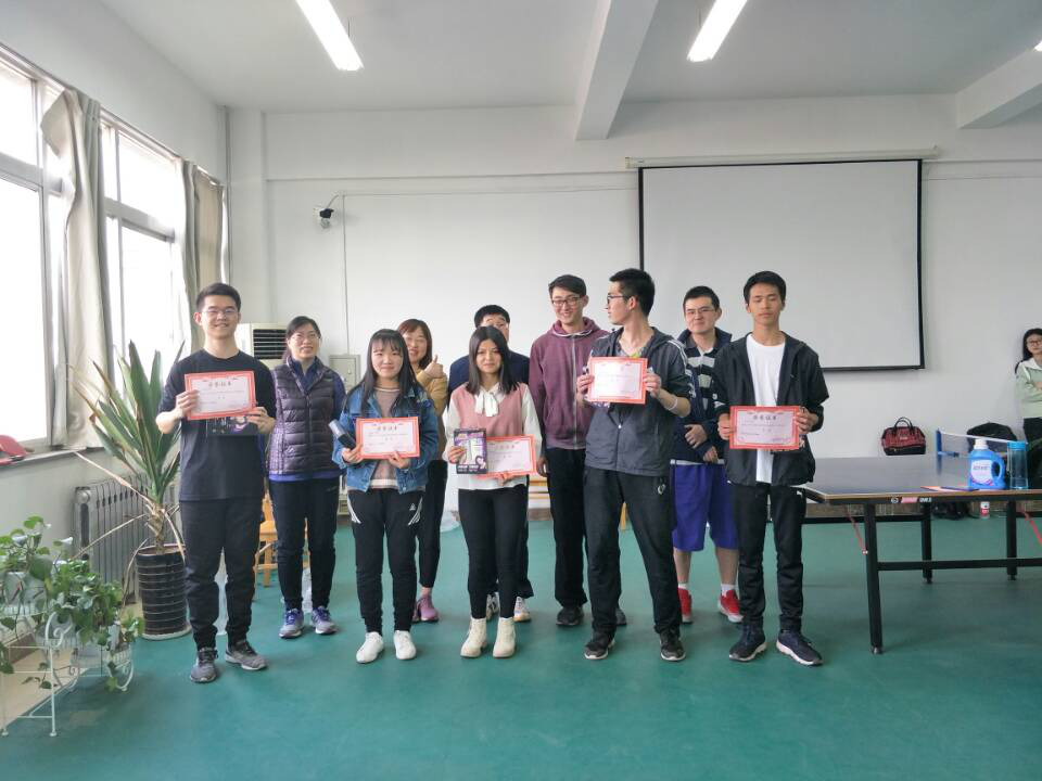 学生会体育部工作人员的组织下,比赛秉承着公平、公正、公开的原则有序进行。参加决赛的四支队伍分别为大一队、大二大三联队、大四研究生联队与教师队。决赛分为男子单打、女子单打和混合双打。乒乓球在空中抛出优美的弧线,赢得一阵又一阵的欢呼声,参赛选手们都以饱满的热情投入到此次比赛中,观看比赛的同学为参赛选手的绝妙扣杀而欢呼,每位选手更是积极比赛,打出了真实水平,打出了实力。在经历了激烈精彩的比赛之后,大二大三联队获得第一名,大一队获得亚军,教师队获得第三名。教师队为其他三支学生队伍进行了颁奖。