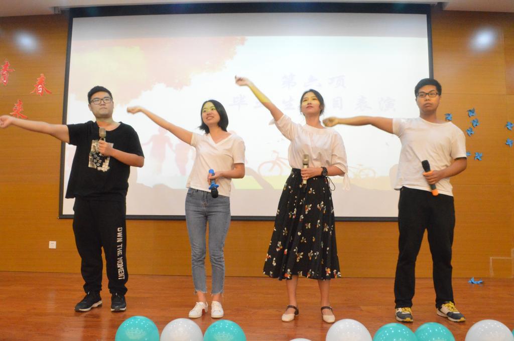 最后,2018届毕业生代表王静带领全体毕业生进行宣誓。欢送会的第一环节就此结束。欢送会的第二篇章是节目表演。歌曲串烧《梦想起航》唱出了大家对青春的无悔和对梦想的坚持,青春作伴,未来可期;诗朗诵《青葱岁月》带领大家回顾了四年来生活在师大的点点滴滴,传达了同学们对大学的留恋与不舍,将现场气氛推向高潮。最后,歌曲《最美的太阳》更是饱含同学们的激情与活力,表达出对未来无限憧憬和期待。随后进行的只言片语环节,将同学们未说完的话一一记录,送给最想送的人。最后,欢送会以师大特色“晚点名”结束,JBO体育