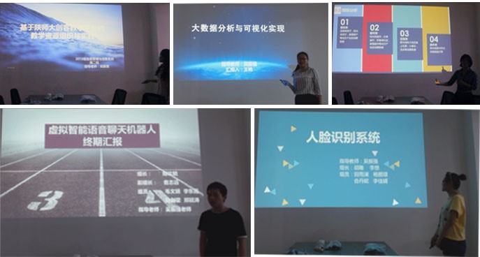 信管2013级1班的同学进行创客教学成果汇报。项目涉及结构化课件自动生成平台、基于陕师大创客教学平台的教学资源组织与实践、差分式隐私保护平台的设计与实现、虚拟机器人聊天系统的开发、大数据分析与可视化实现、人脸识别算法与系统实现等6个项目组,其中结构化课件自动生成平台获得校级互联网+创新项目一等奖,差分式隐私保护平台的设计与系统实现、虚拟机器人聊天系统的开发获得校勤助科研项目资助,并进行持续研究。各项目组通过PPT、视频展示等形式对各自的项目进行详细汇报,内容涉及选题背景、研究意义、研究内容、研究方法及技术、研究成果展示、研究总结与展望、项目反思等多个方面。汇报内容让人耳目一新,给评委老师们留下了深刻印象。