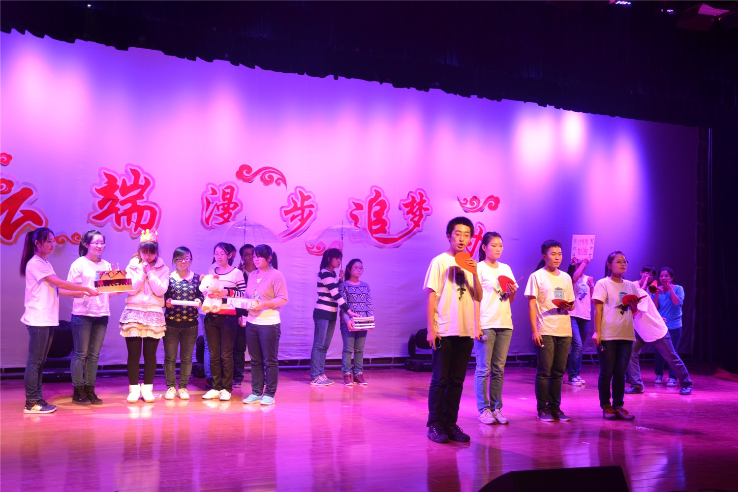 雷秀娟教授、谢娟英副教授、张莉副教授、范虹副教授、李鹏老师、裴炤老师、彭亚丽老师、杨婉萍老师、林凤英老师、何雪莉老师等600余师生参加了晚会。 晚会在舞蹈《欢天喜地》的喜庆气氛中开了序幕,美轮美奂的舞台和绚丽多彩的灯光伴随着一个个精彩的节目,让在场师生都热情洋溢、激动不已。研究生表演的街舞《bforce》,用精湛的技巧和舞姿领在场观众赞叹。师生联唱让观众深深陶醉在歌曲美妙的意境中。脱口秀《感人的话最有力量》以新颖的节目形式,从同学们的实际生活情境出发,发人深省。师生同台表演的《动感show time》展现了计科院师生的别样风采,尤其是老师们在舞台上精彩演绎,博得观众热烈的掌声和尖叫声,在晚会现场掀起了一个个高潮。 乐器演奏的《摇滚卡农》将口琴、电子琴、琵琶、吉他等中西乐器结合在一起,给观众带来了一场空前的音乐盛宴。由2013级同学们表演的舞剧《让座》,用舞蹈的形式表现了公共汽车上一个关于让座的故事,现实的题材发人深省。舞蹈《鸟叔去哪儿》《Dance just for entice you》、《唢呐热舞》、《Judas》、《印度风情》各具特色,表演者们曼妙的舞姿,充满激情的表演将观众深深吸引。小品《试戏》、《新白娘子传奇之来生缘》幽默风趣,引得场下笑声连连,使整个会场洋溢着欢快的气氛。整场晚会在表现大学中亲情、爱情、友情、师生情的诗朗诵《时光掩不住的回忆》中落下帷幕。 晚会进行过程中,同学们纷纷发微博表达了自己的晚会的期待和祝福,更有三十位同学被抽中,获得了西安鼎力信息技术有限公司友情赞助的奖品,极大活跃了会场氛围。 竞博(JBO)体育官方网站