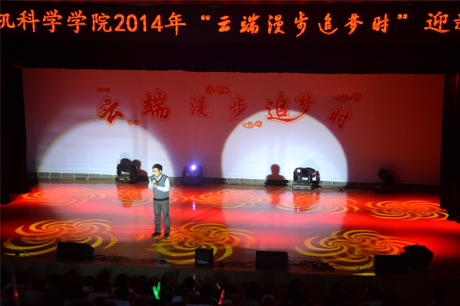 “云端漫步追梦时” 2014年迎新晚会在新勇学生活动中心二层学生会场隆重举行,出席晚会的领导和嘉宾有,校党委学工部部长、学生处处长刘建军、校团委书记鲁镇、国际交流合作处副处长张凌云、党委学工部副部长、学生处副处长曲洪刚、校团委副书记祁斌业、体育JBO体育