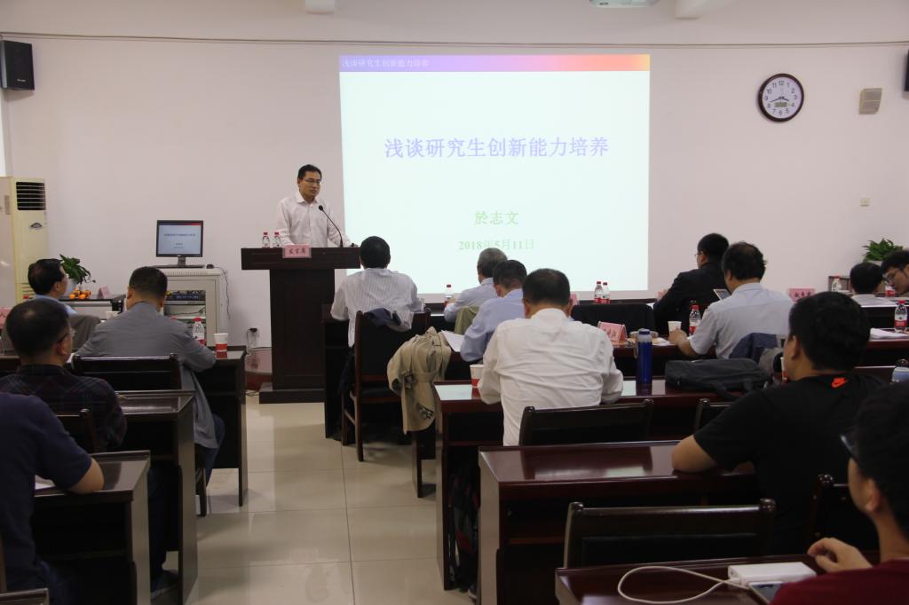 接着房鼎益教授和於志文教授分别作了主题报告。两位专家分享了所在团队关于研究生培养的经验,讨论研究生的培养模式及如何提高研究生的创新意识和科研能力的一些方法。报告引起与会师生的热烈讨论。