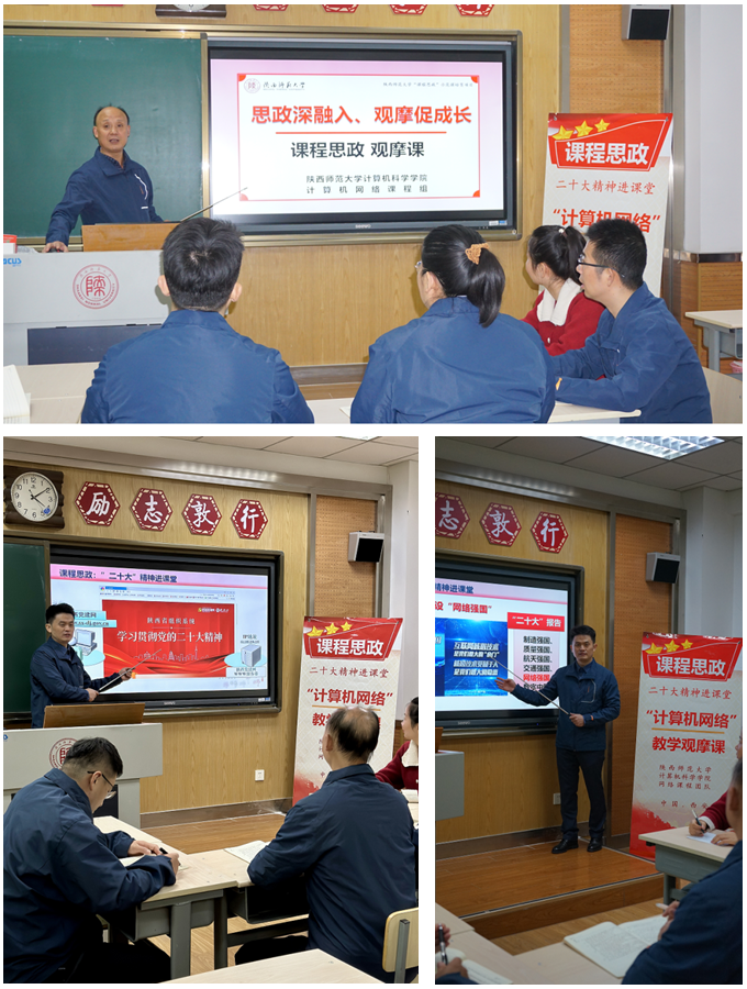为进一步加强课程思政示范课培育建设,推进“党的二十大”精神进课堂,引导教师充分发掘和运用课程蕴含的思想政治教育资源,有效提升课程思政教学效果,“计算机网络”教学团队组织开展了课程思政教学观摩课活动。