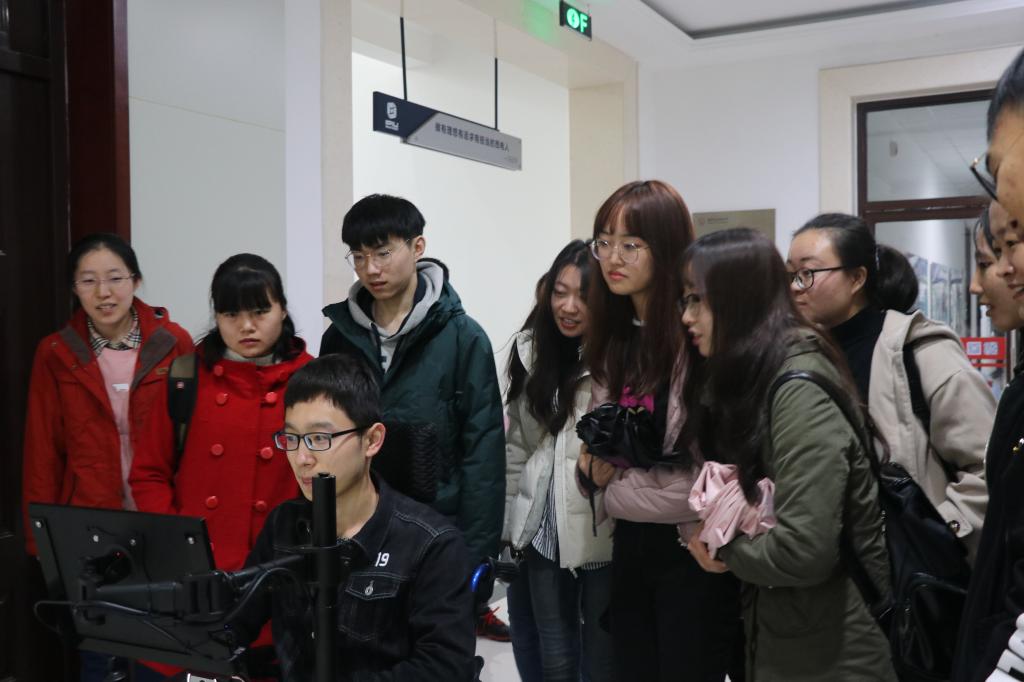 进行了分组参观交流,参观了智能视频分析与识别实验室,体验了“颜值魔镜”、“裸眼3D”、“五子棋自动对弈机器人”、“渐冻人智能轮椅辅助系统”等基于人工智能技术的研发成果等。在活动中,同学们对人工智能在现实生活中的应用表现出了极大的兴趣和热情,纷纷表示通过本次访学交流活动受益颇多,立志于从事人工智能领域的研究。