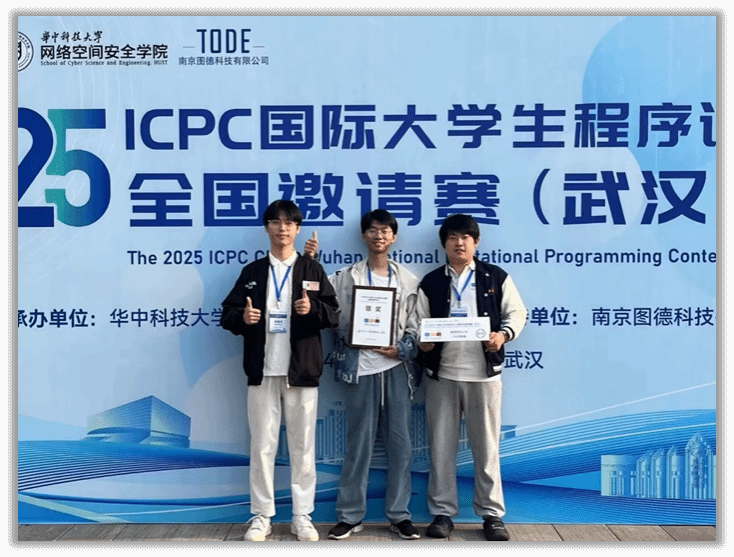 2025年4月27日,第50届ACM-ICPC国际大学生程序设计竞赛全国邀请赛武汉站在华中科技大学举办,我校代表队夺得银奖(国家级二等奖),取得近年以来的最佳成绩。团队成员包括王永政(2022级软件工程)、左祖光(2022级计算机科学与技术(创新实验班))、项锦鹏(2022级软件工程)等三位本科生,指导老师为竞博(JBO)体育官方网站