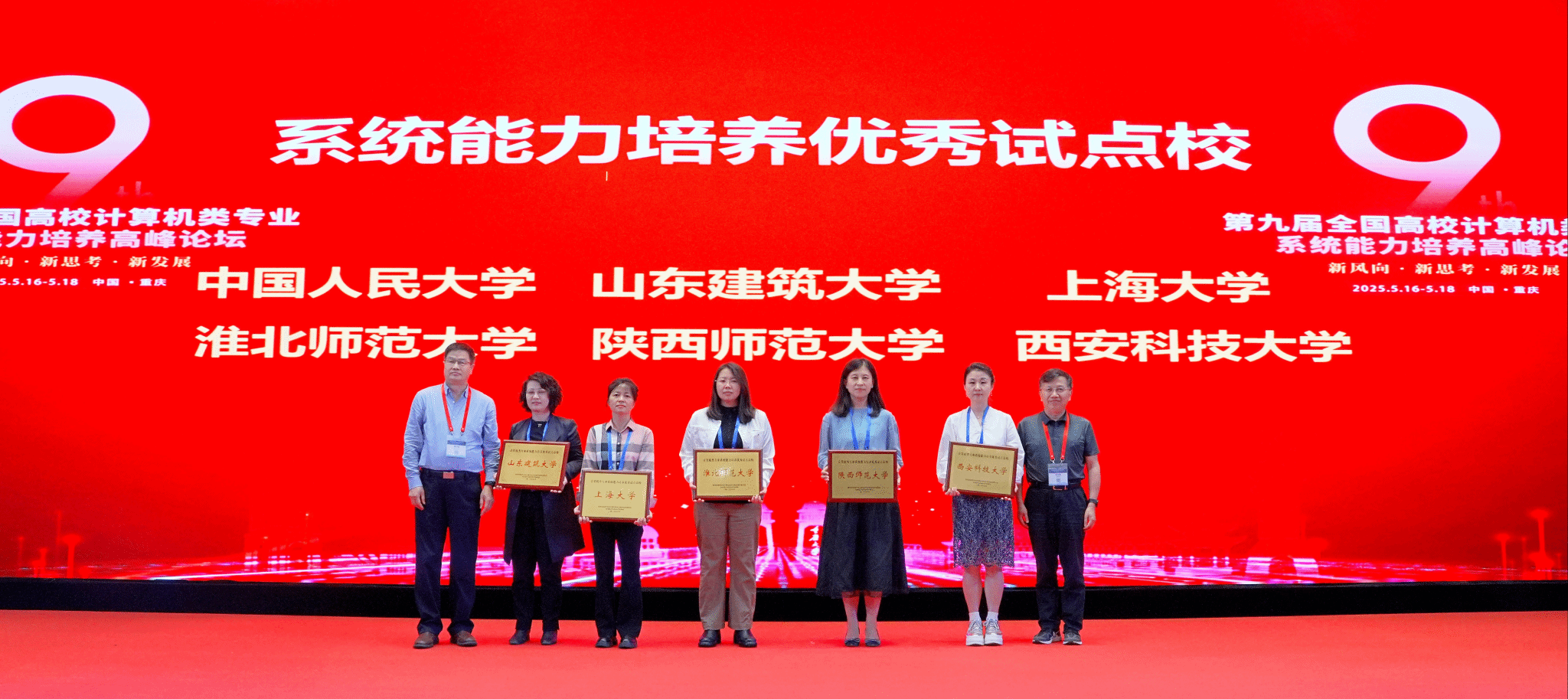 JBO体育 于2019年起,获批教育部计算机类专业系统能力培养试点单位,随后开展了为期5年扎实有力、富有成效的专业建设。2024年,姚若侠院长代表JBO体育 所做项目结题汇报受到专家高度肯定。本届大会上,学校被授予“计算机类专业系统能力培养优秀试点高校”荣誉,JBO体育 代表学校荣获授牌。