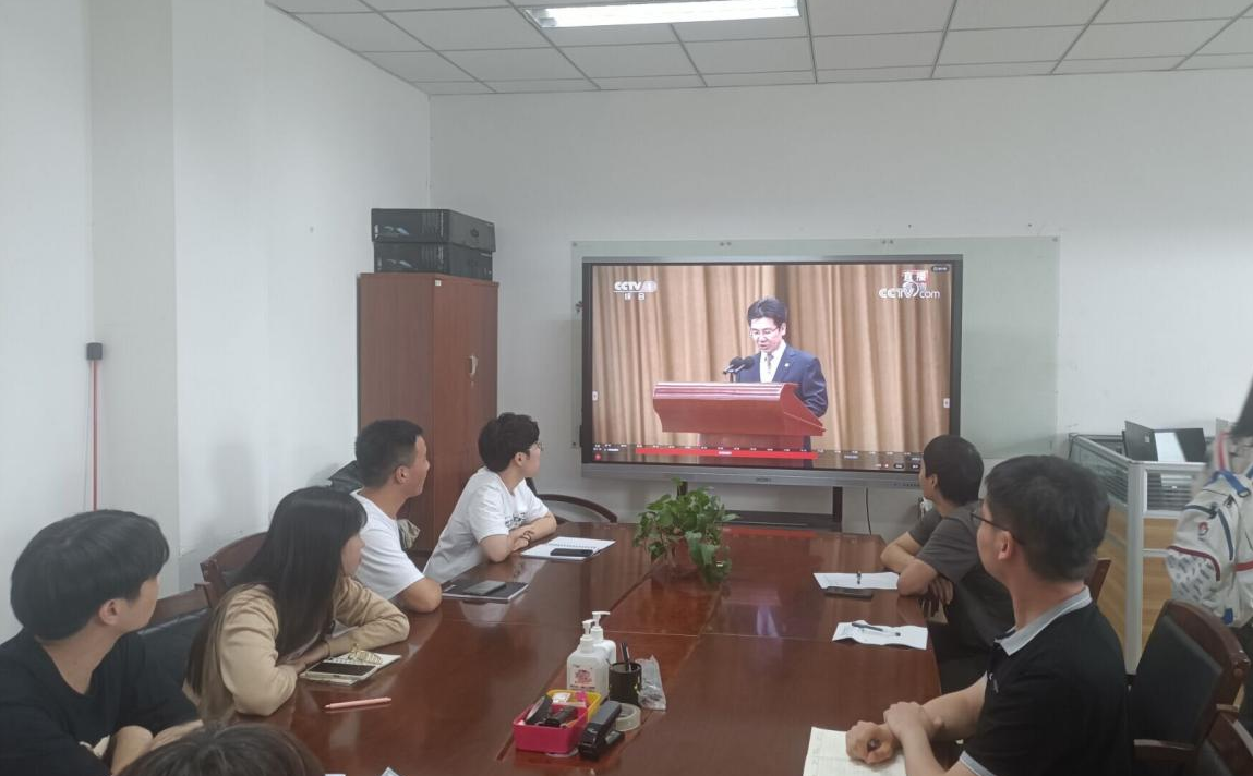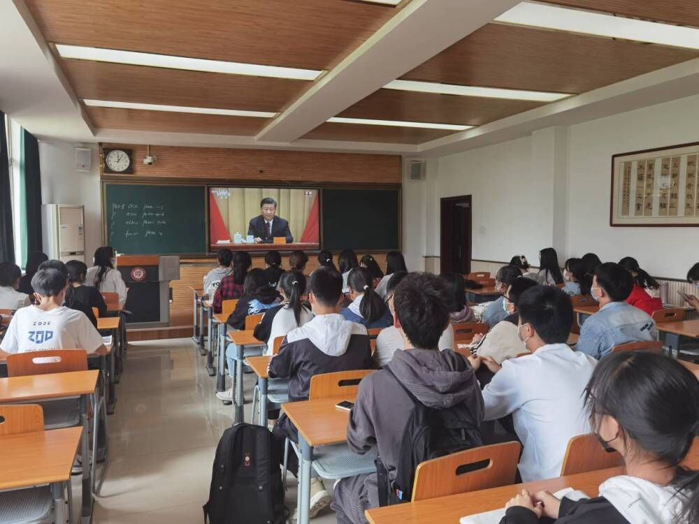 党委书记王耀明、党委副书记郭康凌、团委书记何文曦、各年级辅导员以及30余名学生团员代表,在文津楼3412报告厅共同收看了大会直播。与此同时,JBO体育