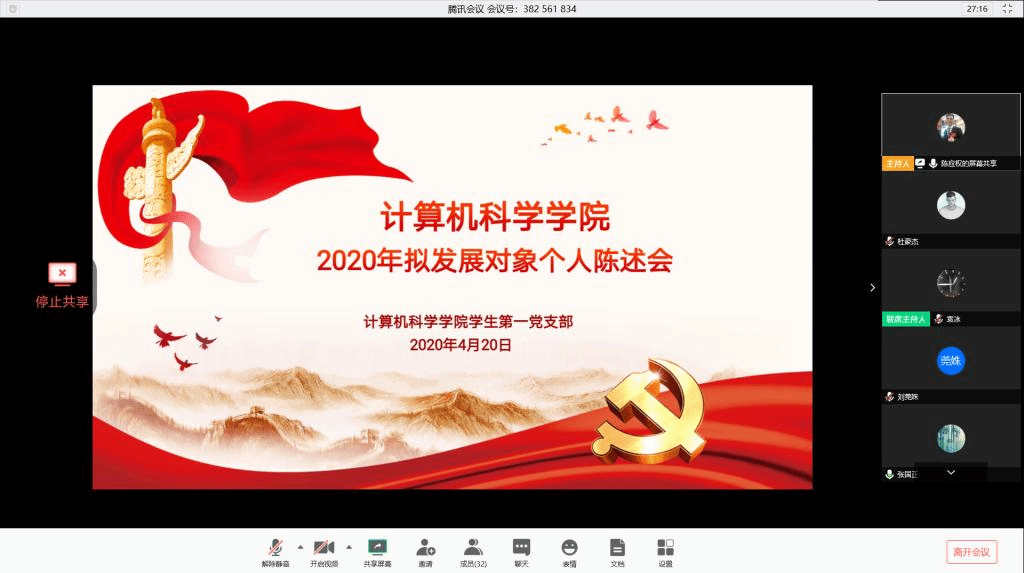 学生第一党支部于2020年4月20日召开了2020年拟发展对象个人陈述会。JBO体育