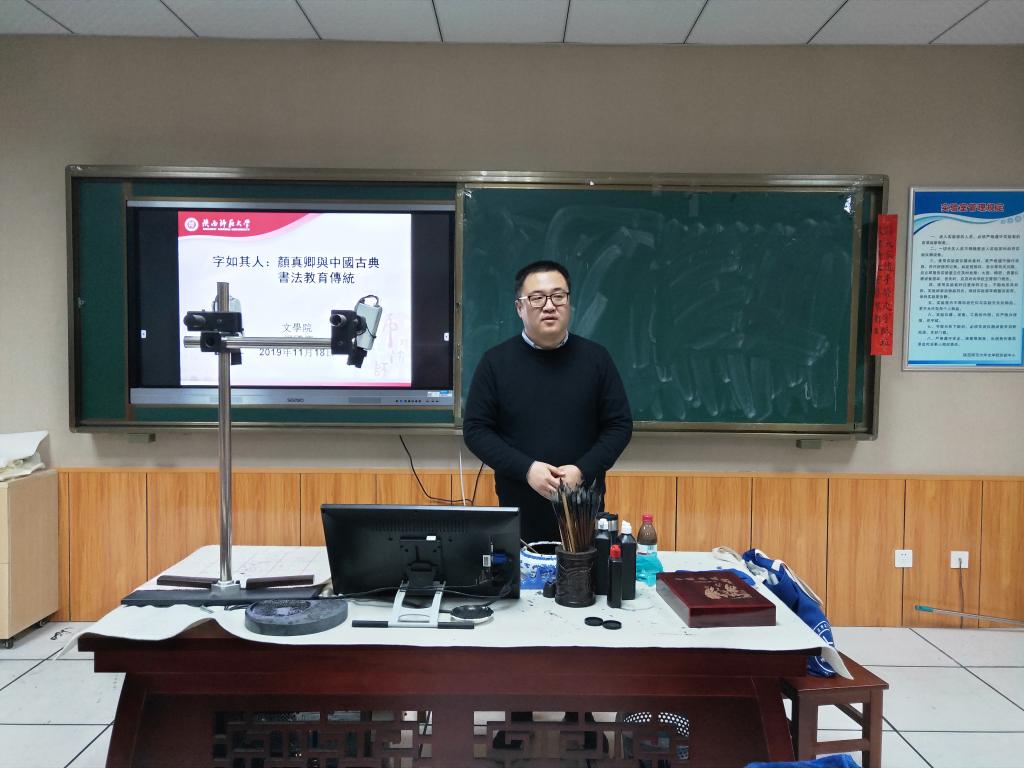 教师、砚友书画社指导老师杨国庆开展了“字如其人:颜真卿与中国古典书法教育传统”书法培训。JBO体育