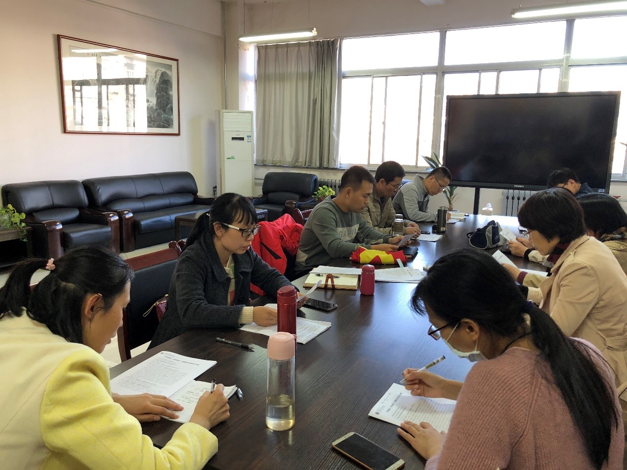 汪西莉老师首先强调了“不忘初心、牢记使命”主题教育对于每位党员的重要性,要求每位党员要继续认真学习《习近平关于“不忘初心,牢记使命”重要论述摘编》、《中国共产党章程》、习近平在“不忘初心、牢记使命”主题教育工作会议中的重要讲话等材料,寻找自身问题和不足,从思想上深入反思剖析,并结合工作实际,将整改落到实处。她提出我们教师党员要增强“四个意识”、坚定“四个自信”、做到“两个维护”,学习习近平总书记深厚的为民情怀,进一步锤炼宗旨意识,牢记初心使命,践行党的路线,全面贯彻党的教育方针,解决好培养什么人、怎样培养人、为谁培养人这个根本问题。汪老师对本支部每位党员的学习近况进行了了解,并督促大家做好学习笔记,另外,汪老师强调大家作为教师党员,要结合自己的工作实际进行学习,开展批评和自我批评,也要在学习过程中重视党章、党史的学习。