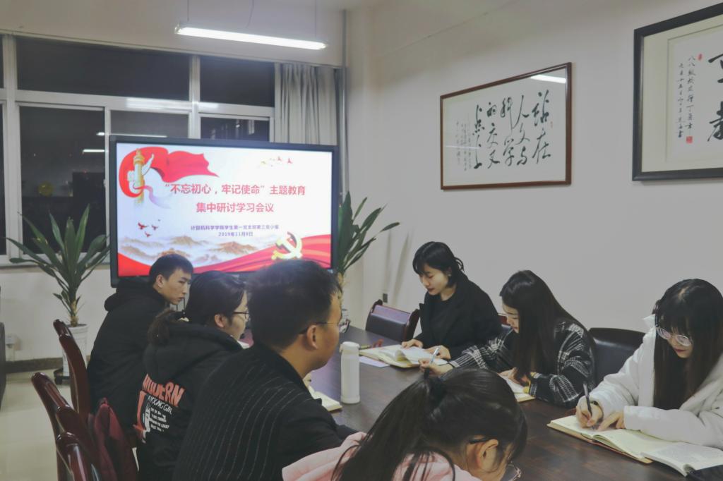 学生第一党支部第三党小组在文津楼3427开展了“不忘初心、牢记使命”主题教育集中研讨学习会议。此次会议由负责人林雨婷主持,支部书记陈应权和第三党小组全体成员参加了本次集中学习。
