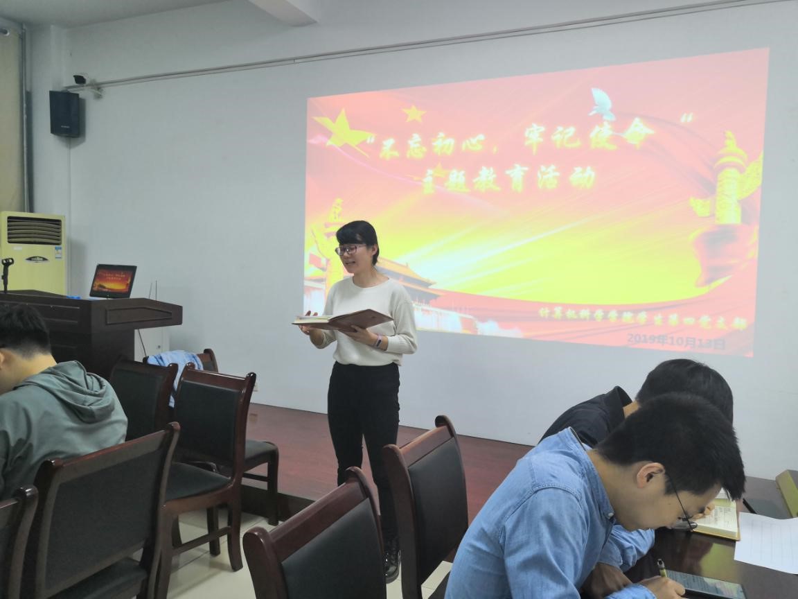 报告厅开展了 “不忘初心、牢记使命”主题教育学习为主要内容的支部大会。学生第四党支部全体成员参加了会议。会议由支部书记刘亚灵主持。