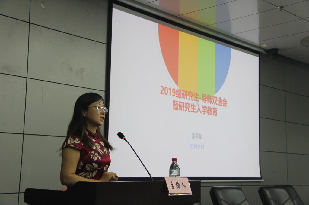 雷秀娟副院长向同学们解读了师生双选原则,详细介绍了研究生分类及导师组、分配原则及研究生招生情况、留学生情况、研究生培养方案和研究生毕业资格认定办法等。随后,各位导师向研究生介绍了自己的研究方向。