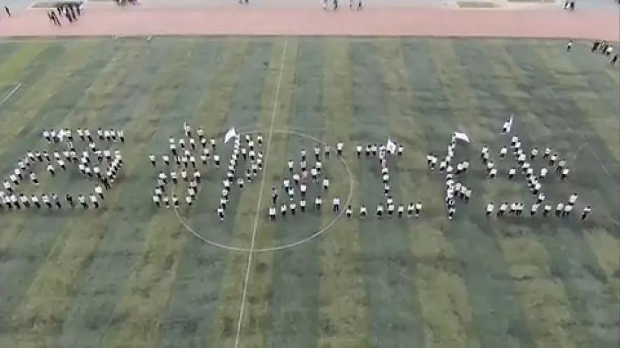 2017级本科生所摆造型“西部红烛”的照片。JBO体育