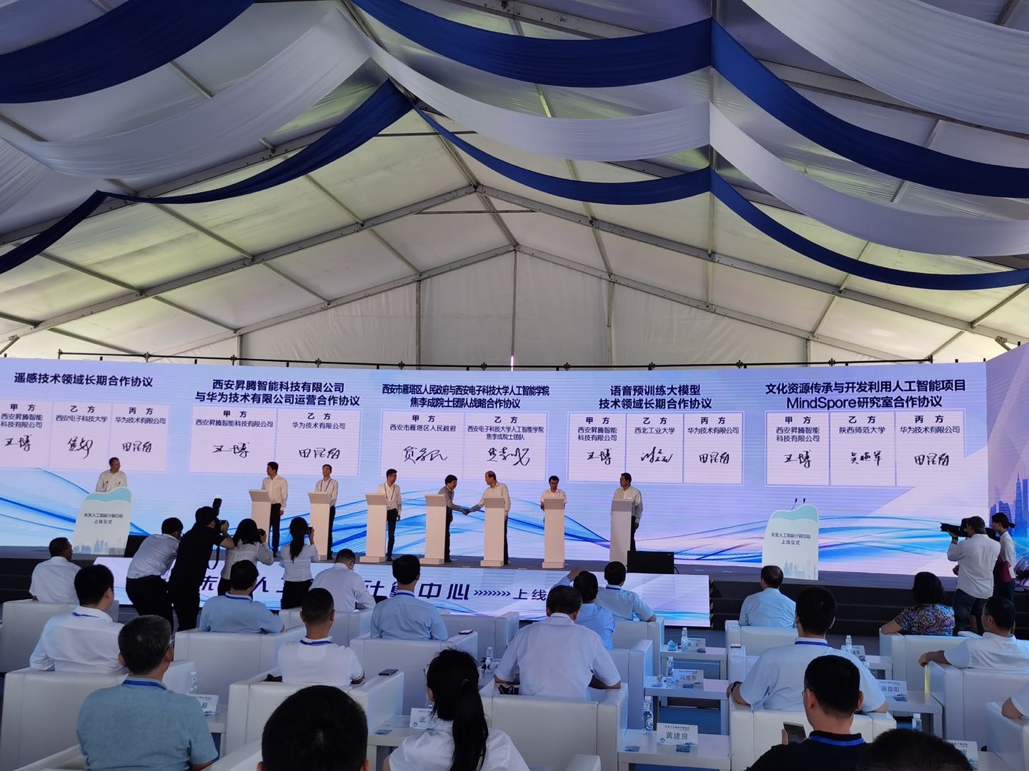 上线仪式中,华为技术有限公司、西安昇腾智能科技有限公司与西安电子科技大学、西北工业大学、陕西师范大学的相关研究团队签订了合作协议,致力于将基于昇腾AI算力底座的解决方案用于自动驾驶、智慧医疗、智慧城市、文化资源开发利用等多种应用场景,支撑国家战略任务落地、促进经济与产业发展融合。