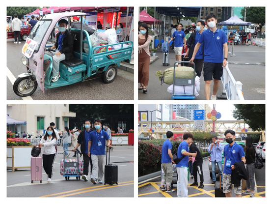 报告厅积极帮助新生们完成行李搬运、材料提交等任务。
