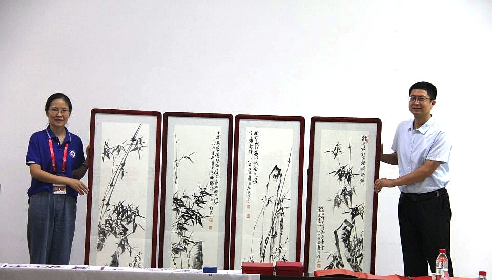 赠送了91届全体校友精心准备的纪念品——字画屏风和水晶杯,李鹏副院长代表JBO体育