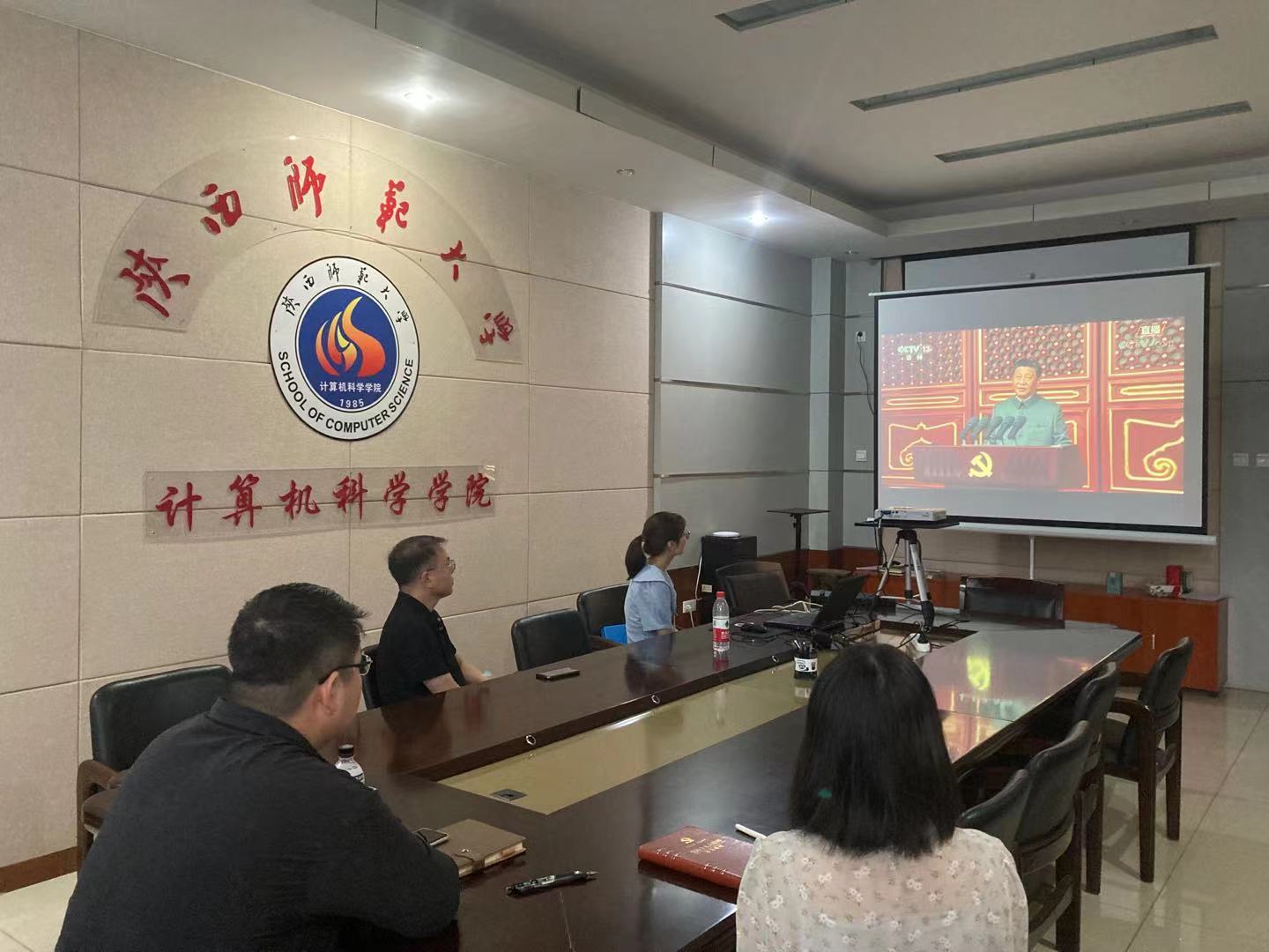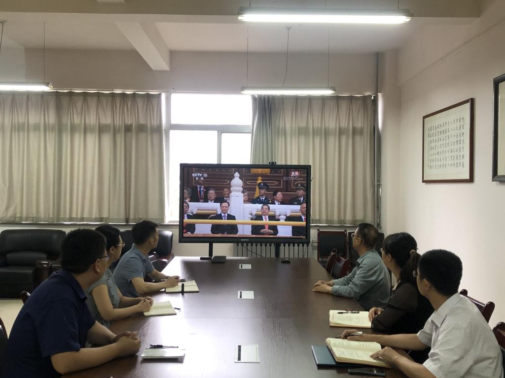 班子成员和部分教师、研究生、本科党员分别在文津楼3412、文津楼3431、文津楼3427会场观看会议直播。