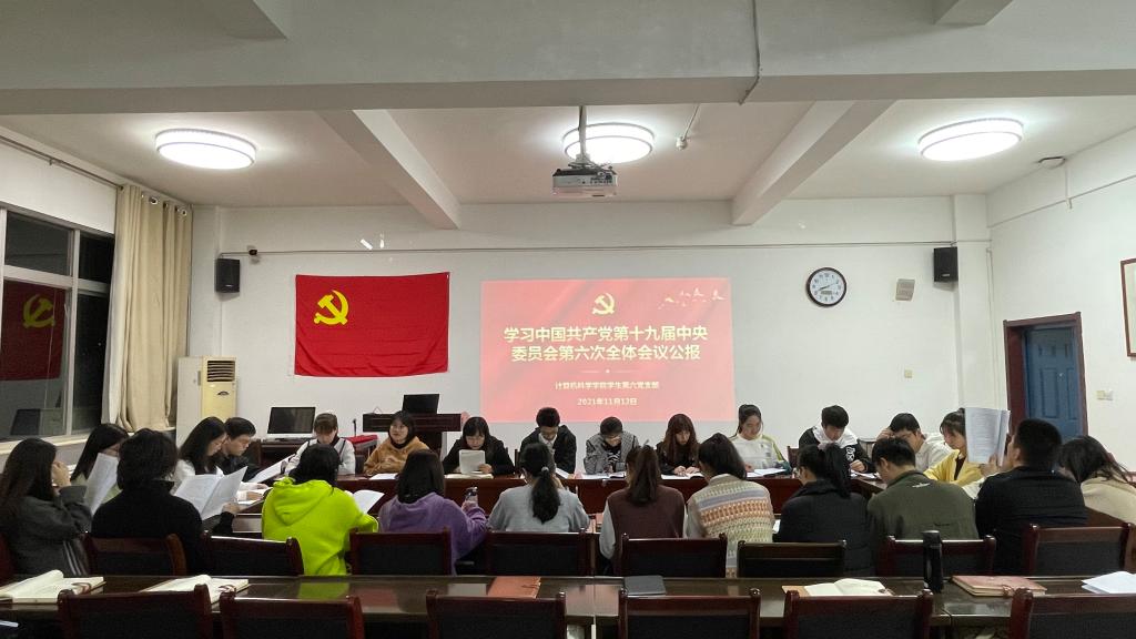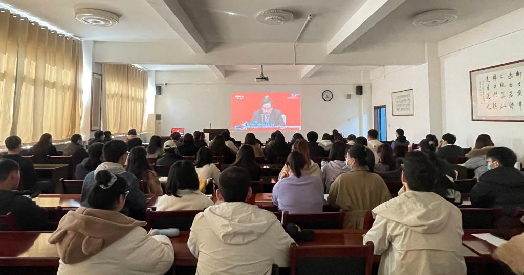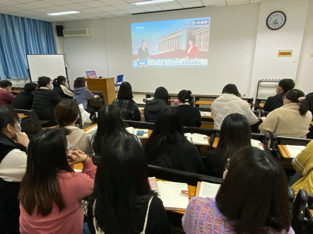 党委副书记郭康凌组织所联系的学生第六党支部同学共同学习了大会公报,各团支部和其他党支部在课后也组织观看了视频回放。
