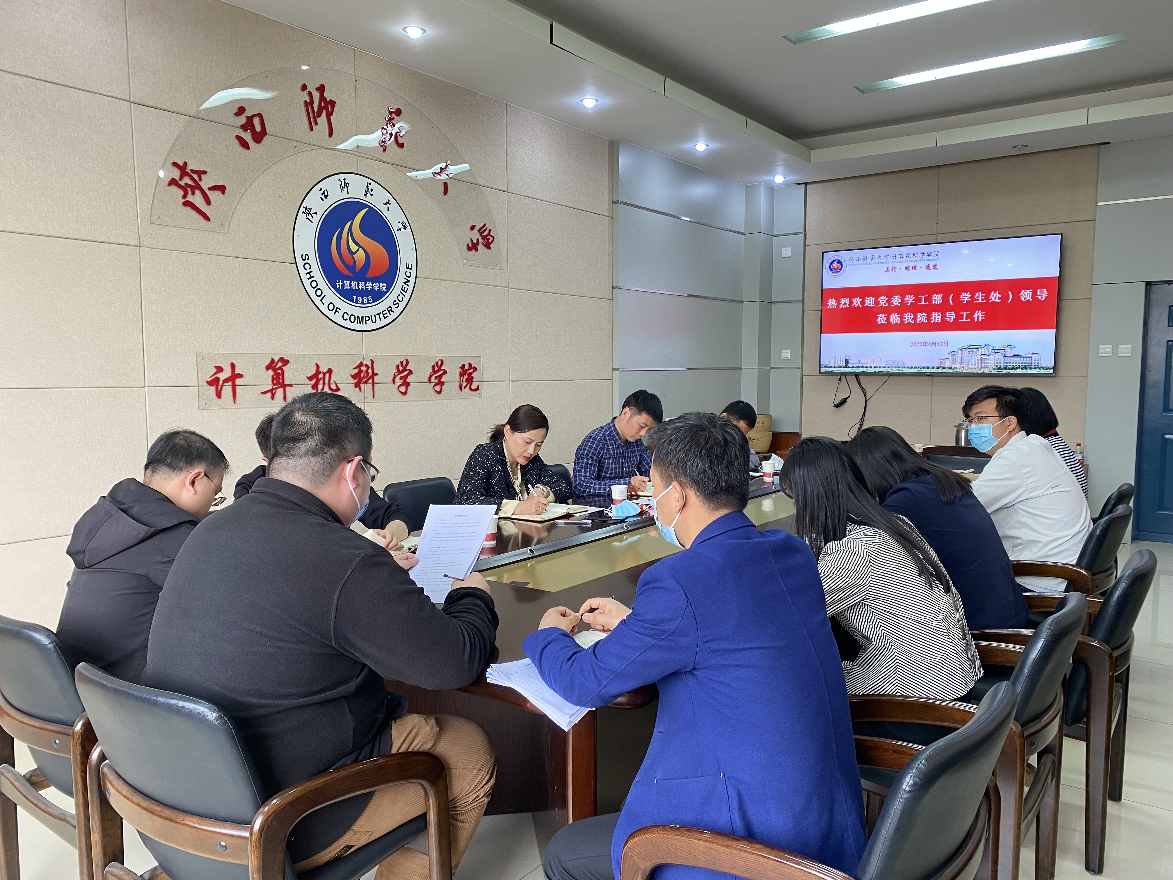 4月13日下午,我校党委学工部(武装部、学生处)部(处)长蒋毓新、综合办公室科长时浩翔、学生资助管理中心副主任魏云一行到JBO体育