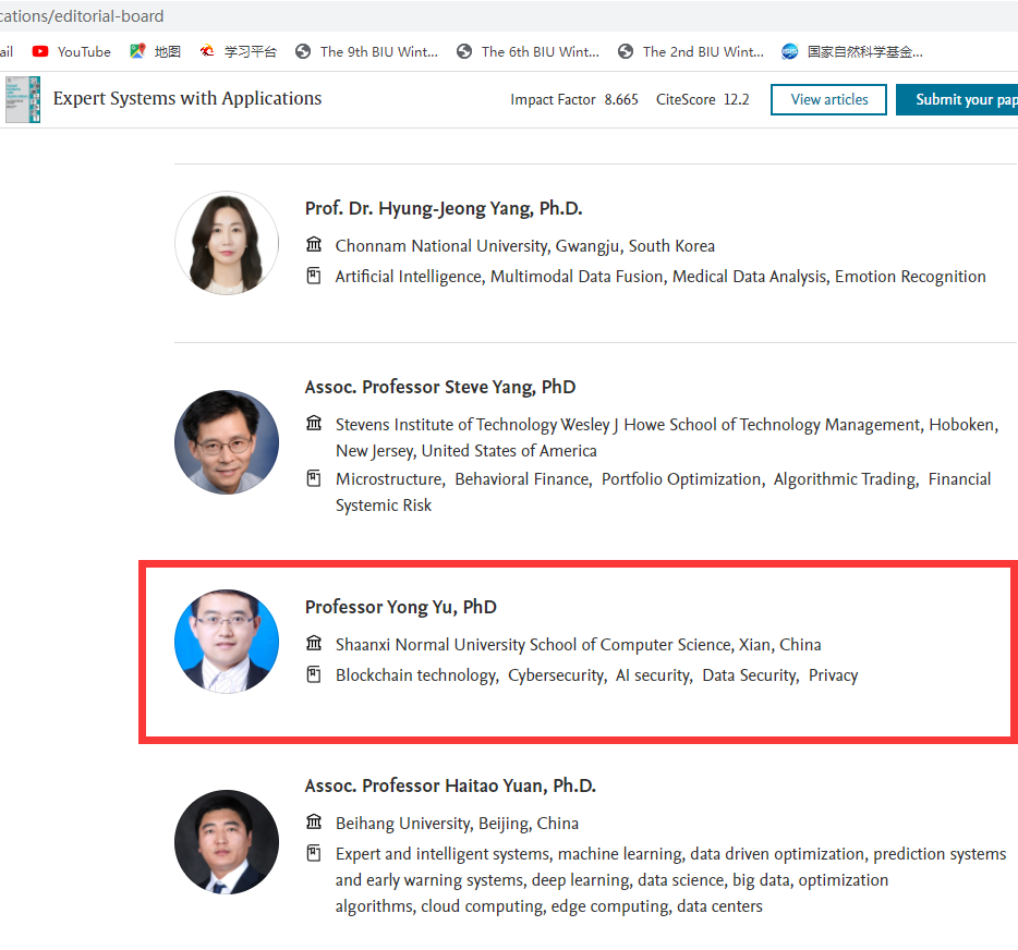禹勇教授受邀担任计算机学科国际高水平期刊IEEE Transactions on Computers和Expert Systems with Applications的副主编(Associate Editor),任期四年,主要处理信息安全与隐私保护领域的投稿,这将对进一步提升我校计算机学科国际学术影响力起到积极作用。