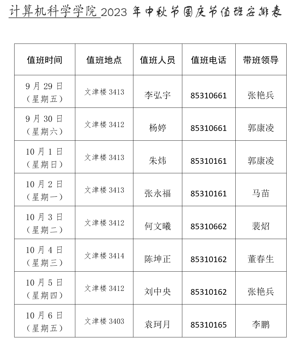 1.9月29日 (星期五) 至10月6日 (星期五) 放假调休,共8天,值班时间:上午8:30-12:00,下午14:30-17:30。