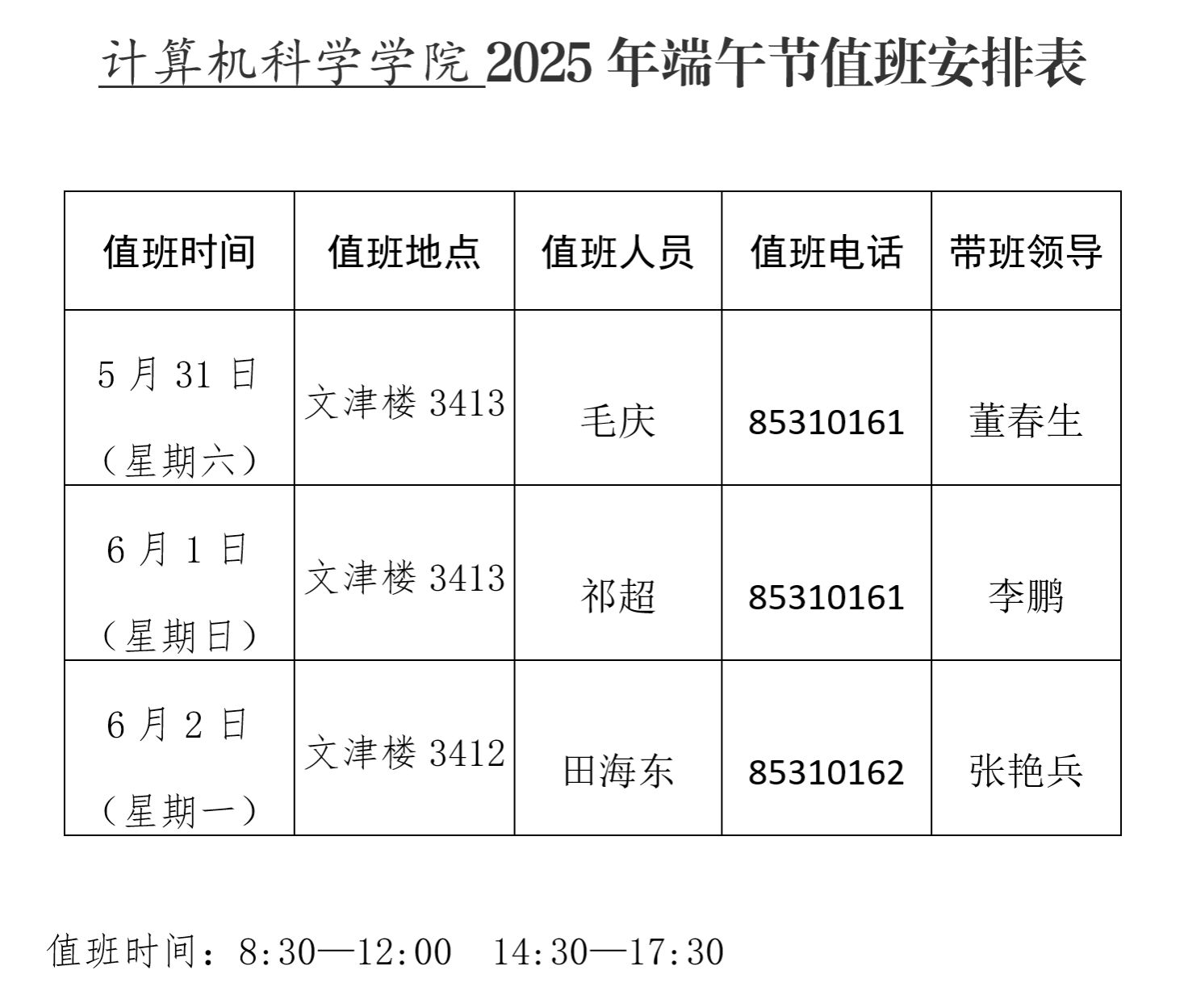 竞博(JBO)体育官方网站 2025年端午节值班安排表