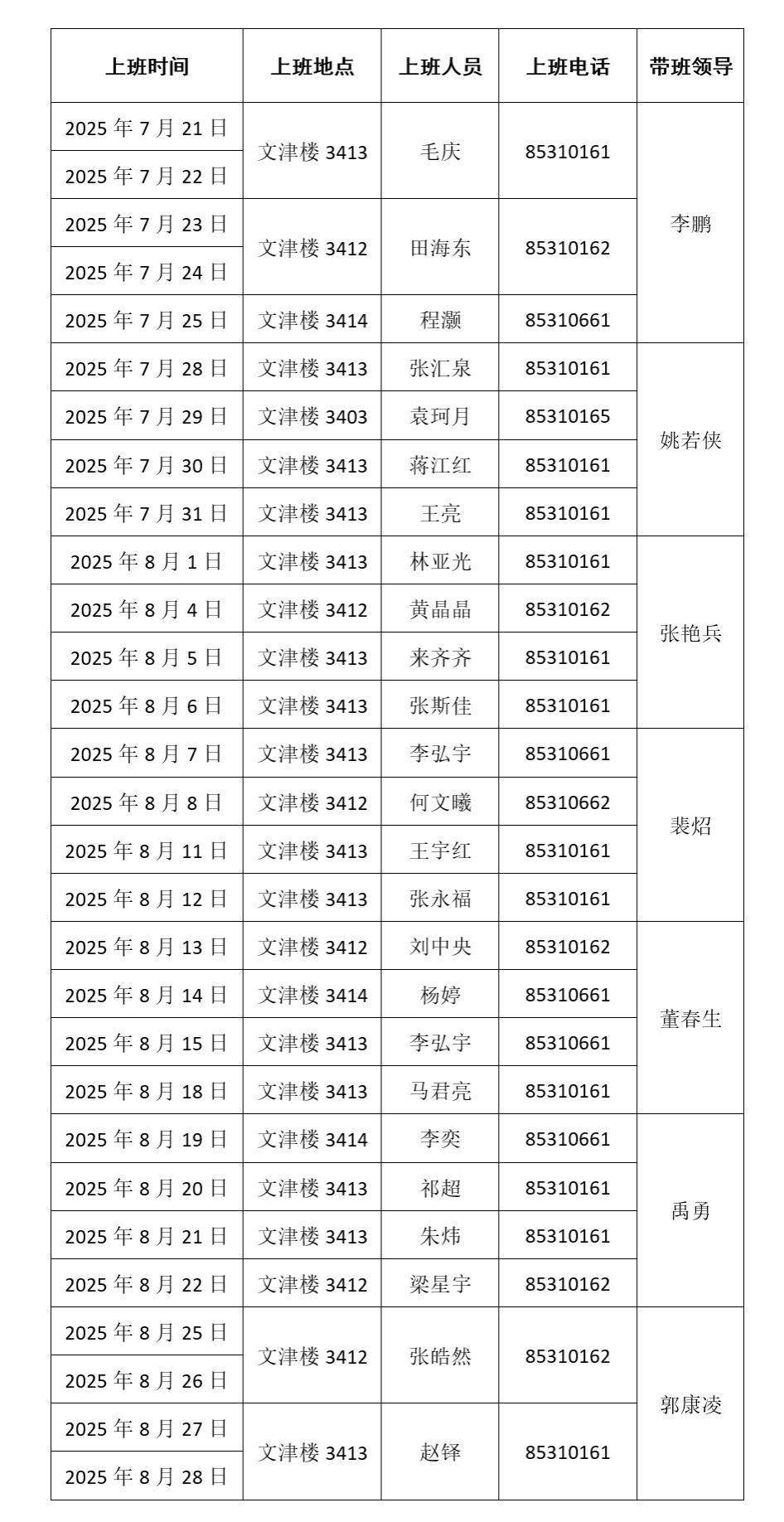 1.暑假期间轮流上班。上班时间为星期一至星期五,上午8:00-12:00,下午2:30-5:30。