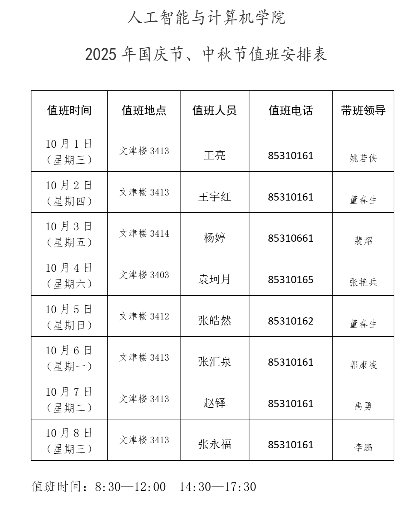 JBO体育 2025年国庆、中秋假期值班安排