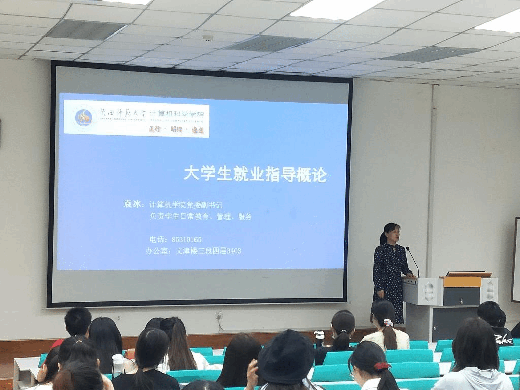 袁老师通过官方数据对目前就业形势进行了分析,近些年毕业人数上涨,就业竞争压力逐年增大,但计算机专业的就业形势较好,且薪资较高。接下来,袁老师对《大学生就业指导概论》这一课程进行详细解说,主要从课程性质、教学模式、考核方式和课程教材四个方面展开介绍。随后,袁老师对学校的就业政策进行说明,简要介绍了毕业生就业指导服务中心的工作,并对国家就业创业政策,如扩大基层项目、补充教师队伍、科研助理等进行说明;最后是学校管理制度。袁老师重点讲解《就业协议书》的填写规范,通过实例照片讲解注意事项、签约流程、生效日期、丢失协议书处理办法等,同时对违约和改派政策进行讲解。