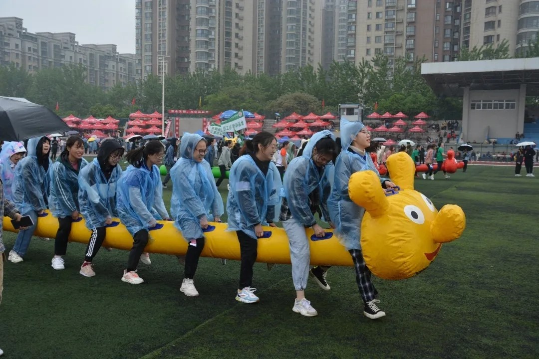 健儿却热情不减,毫不退缩,坚持完成男子铅球、女子3000米、男子10000米等个人项目,并在男子10000米中取得第5名的成绩;坚持完成女子4×400接力赛,男子4×400接力赛,负重接力等集体项目,并在负重接力中获得第5名。教工们也参与到运动会的比赛中,在繁忙工作之余放松了身心。