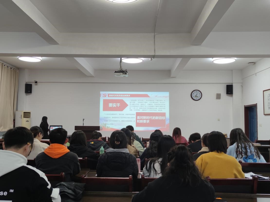 学生第五党支部于12月2日晚在文津楼3412报告厅开展了“勇担当、善作为,做新时代合格共产党员”主题党日活动。本次活动由支部组织委员赵雪玲同志主持,支部全体成员参加。