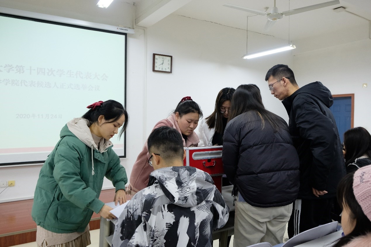 在文津楼3121教室召开学生代表正式选举会议,101名本科各年级代表参会。会议由团委副书记靳雨欣主持。