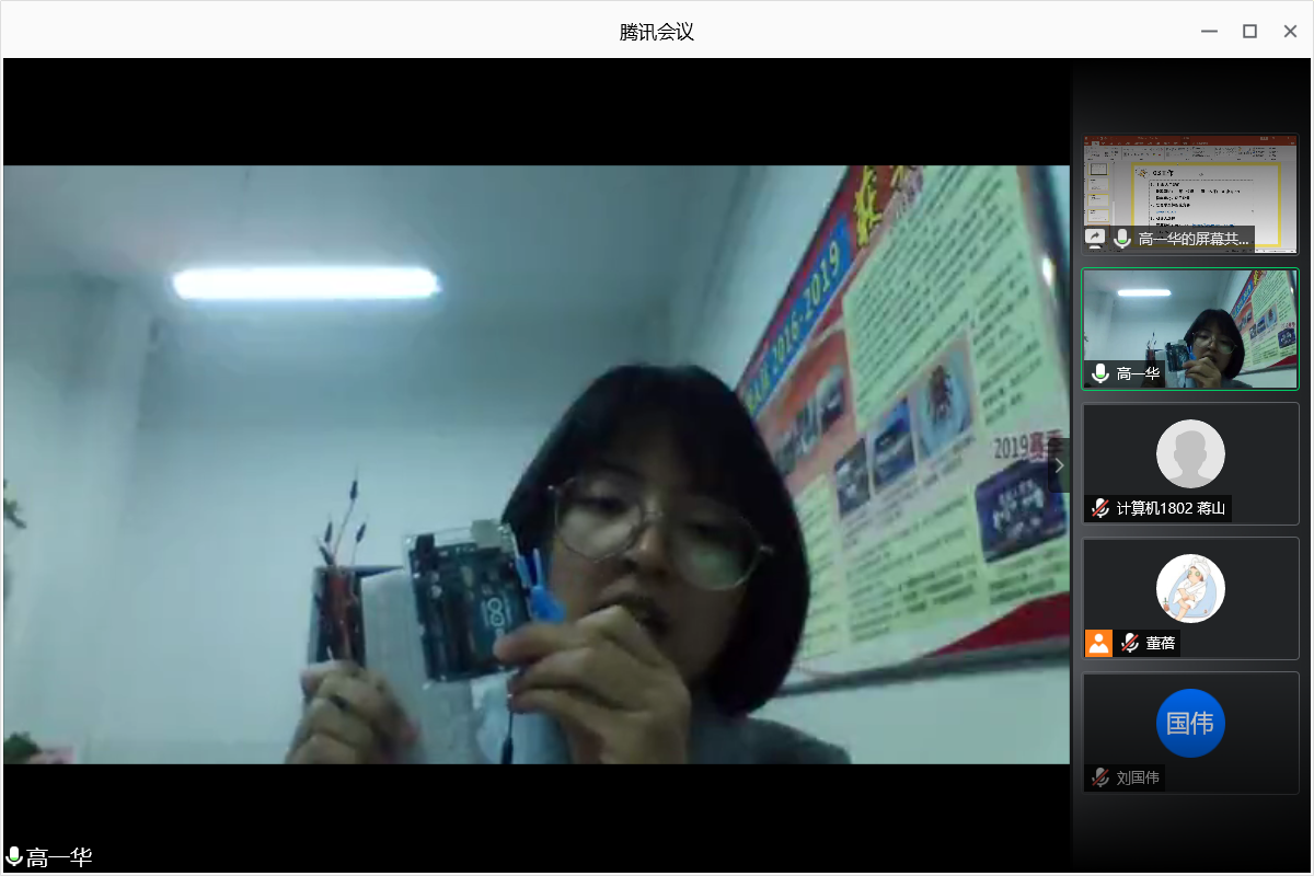 2019届师范专业毕业生高一华目前就职于太原第十二中学,她就教资考试的具体情况向同学们进行了详细介绍。高一华还对自己目前工作的重点进行了说明,并向同学们展示了太原第十二中学信息技术课堂上机器人编程教学开展的情况,使同学们对自己将来一段时间内可能的发展方向有了较为直观的了解。