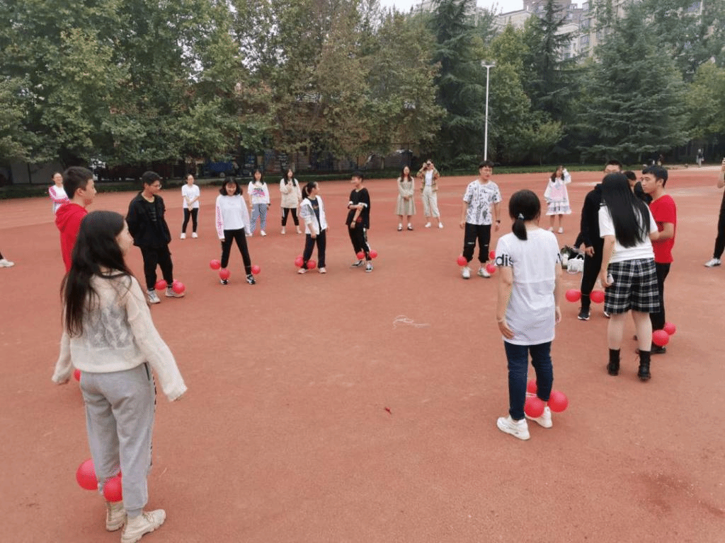 活动第三项——“踩气球”。在第二个活动充分调动了同学们的积极性的同时,踩气球的活动将整个主题活动推向了高潮,让同学们的参与热情空前高涨。“踩气球”活动由每组推荐选出两名身姿矫健的小组代表参与,比赛在剩余同学围成的一个大圈中进行,参赛成员肩并肩地奔跑,参赛小组成员互相协作保护自己的气球,观赛人员不曾停歇的欢呼,无一不在揭示着同学们对这个活动的认可和支持,一圈圈缩小的不仅仅是参赛成员的活动范围,更是全班同学之间的距离。
