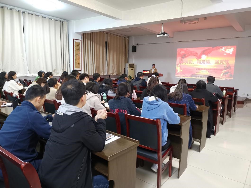 学生第五党支部于10月14日晚在文津楼3412报告厅开展“学党史、知党情、强党性 ”主题党日活动。本次活动由支部组织委员赵雪玲同志主持,支部全体成员参加。