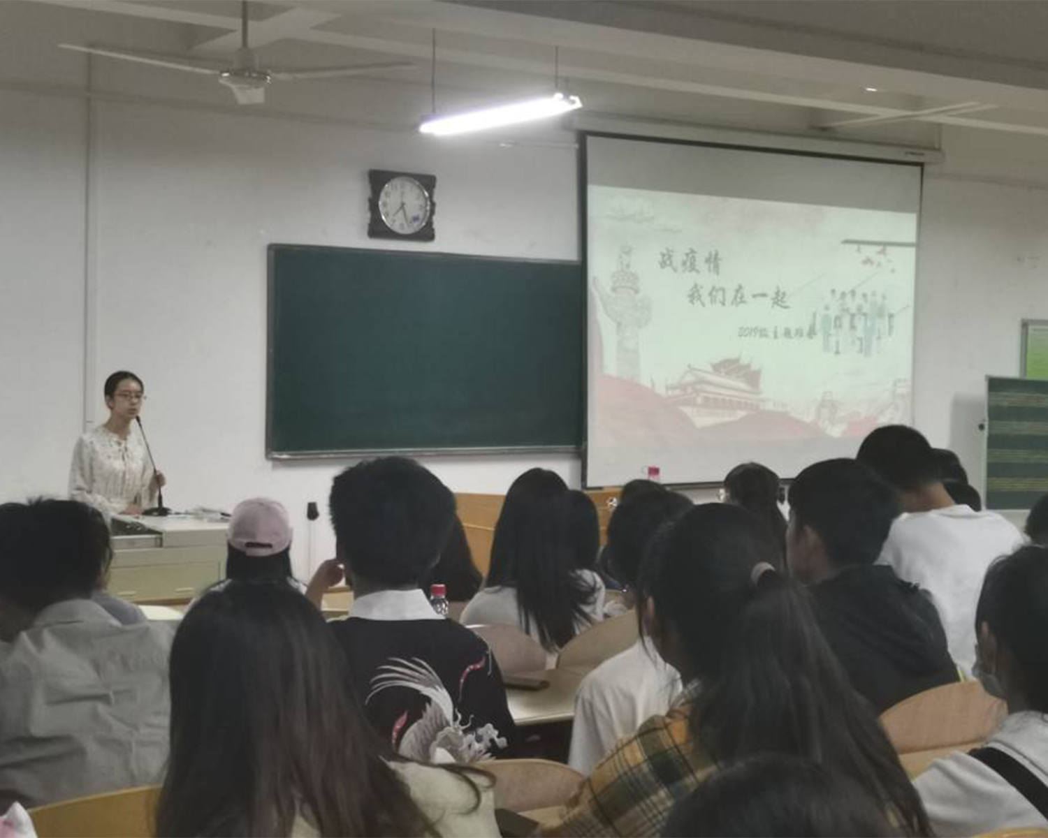 2019级本科生在文津楼1319教室开展了“抗疫情,我们在一起”主题班会,2019级全体本科生参加了会议,会议由JBO体育