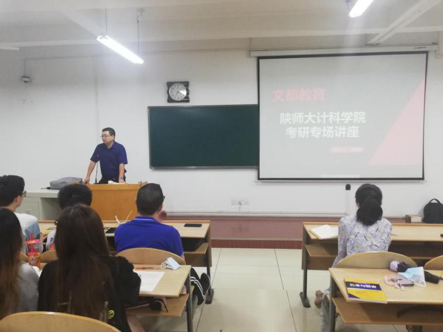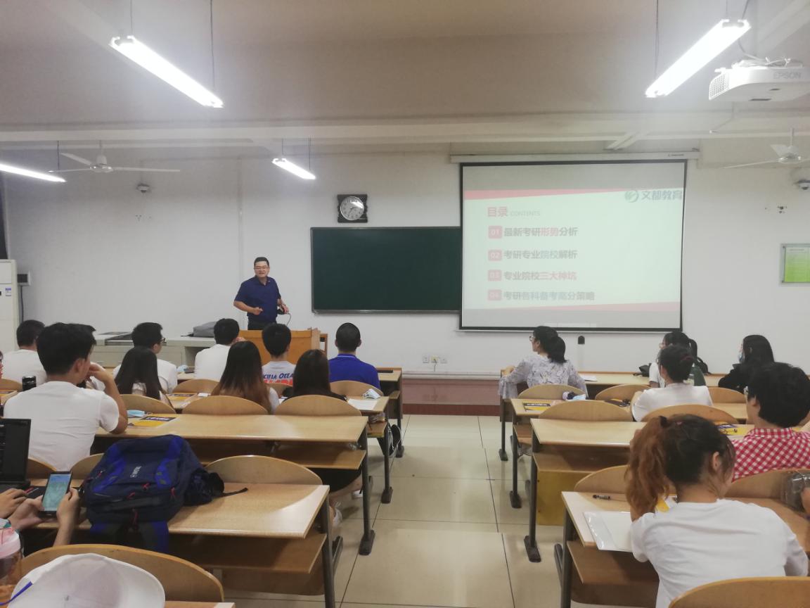 联合文都教育于9月13日19:00在文津楼1116教室召开考研讲座。本次讲座由马回峰讲师主讲,2018级辅导员安琪和2018级全体非师范参加了讲座。