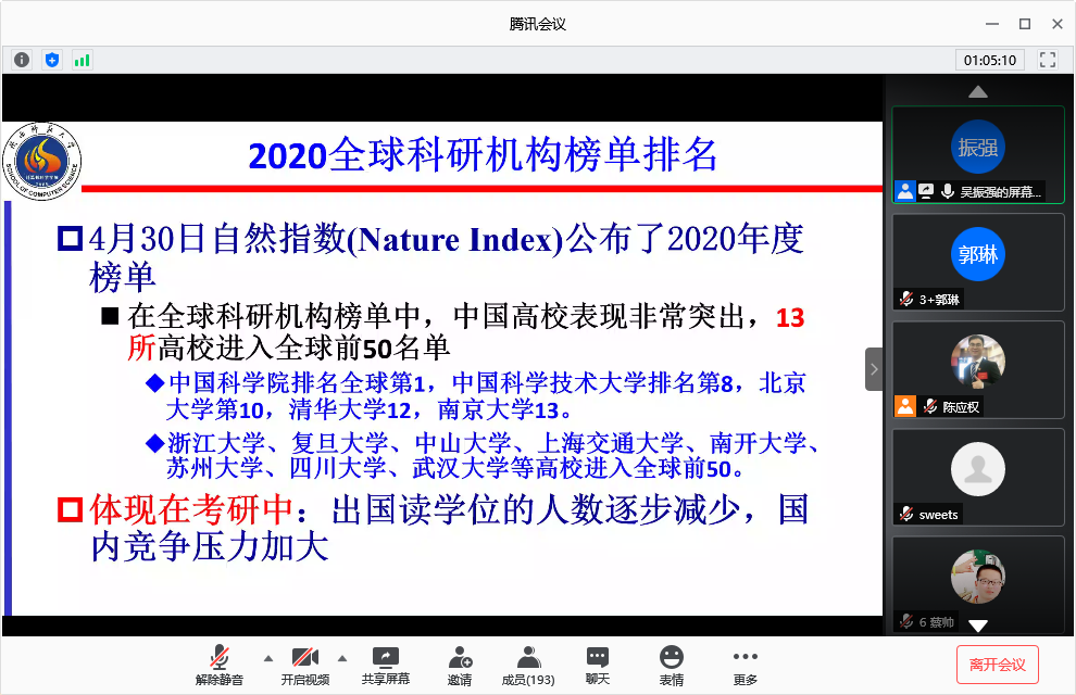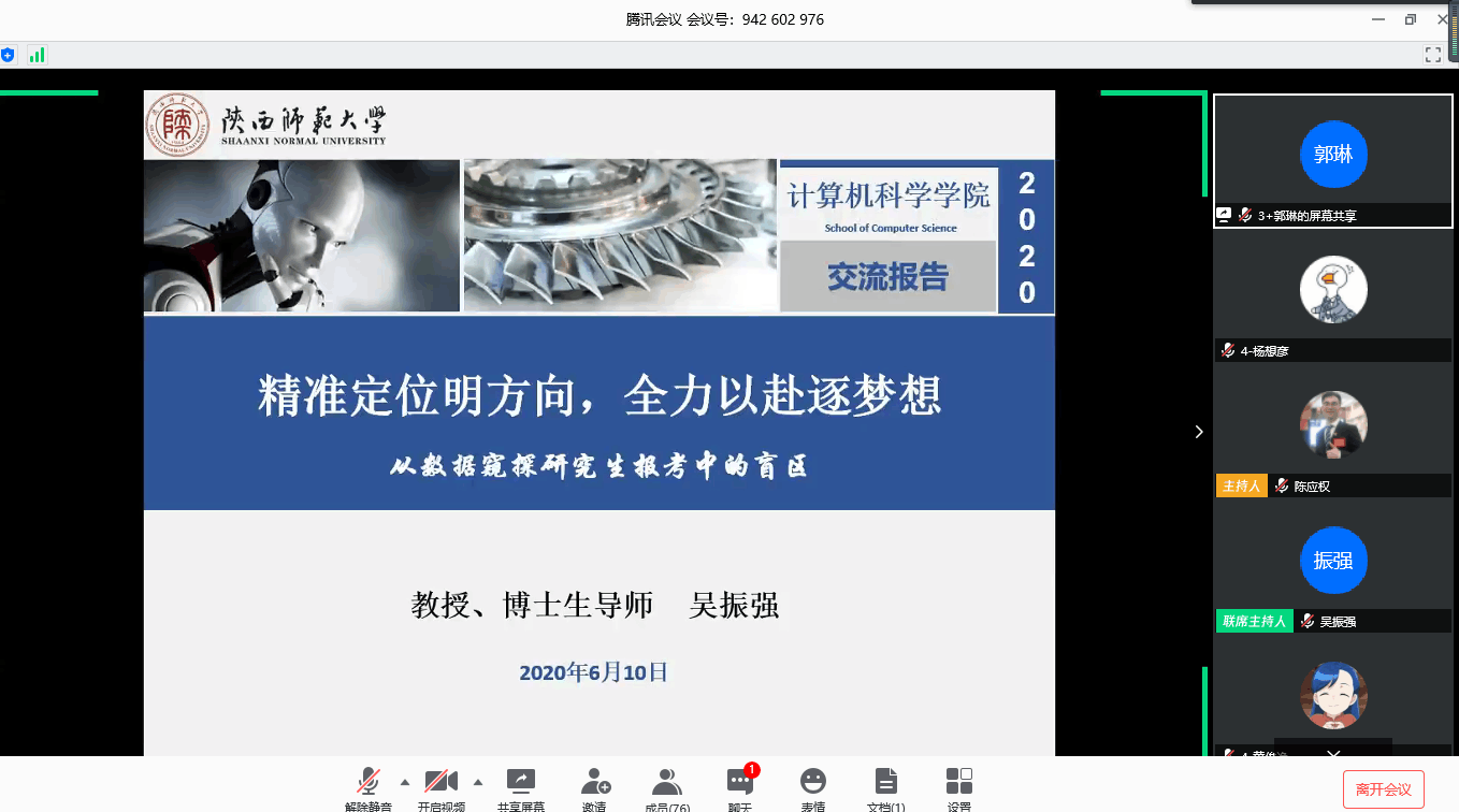 举行了“精准定位明方向,全力以赴逐梦想”主题线上考研指导课程。吴振强教授受邀出席并作了题为“从数据窥探研究生报考中的盲区”的报告,JBO体育