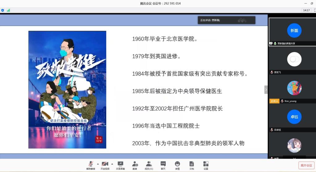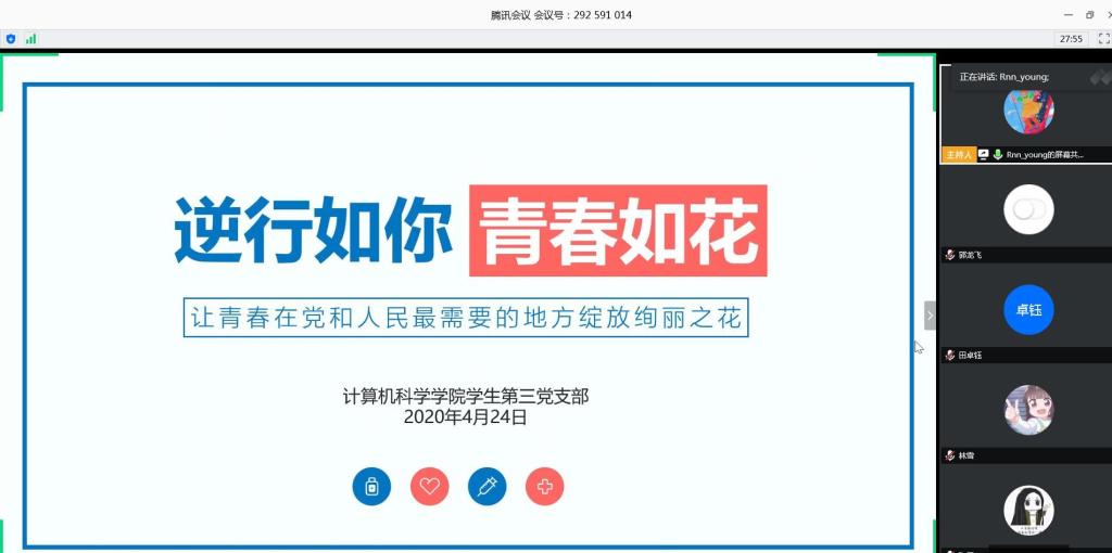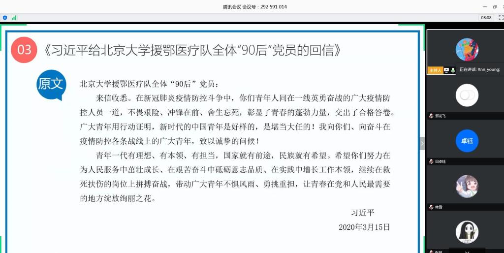 学生第三党支部于2020年4月24日通过腾讯会议召开“逆行如你 青春如花”主题党日活动。