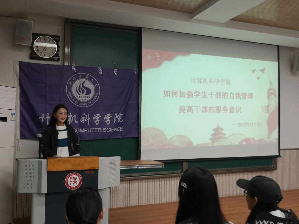 培训的最后,王越同学对于在场全体学生干部以及自身提出了期望。她希望学生干部能做到低调做人、高调做事,做有理想、有情怀、有担当的青年;能够高效工作,高效学习,充分发挥引领、表率、服务作用,为JBO体育