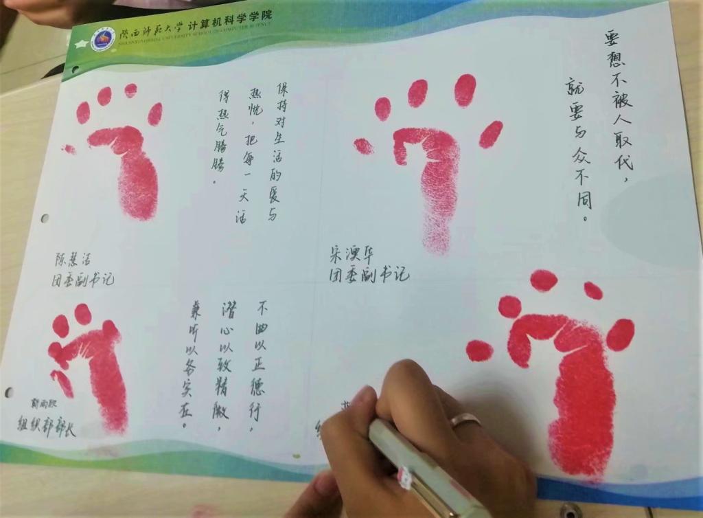会后,各学生干部在纪念册上留下手印。
