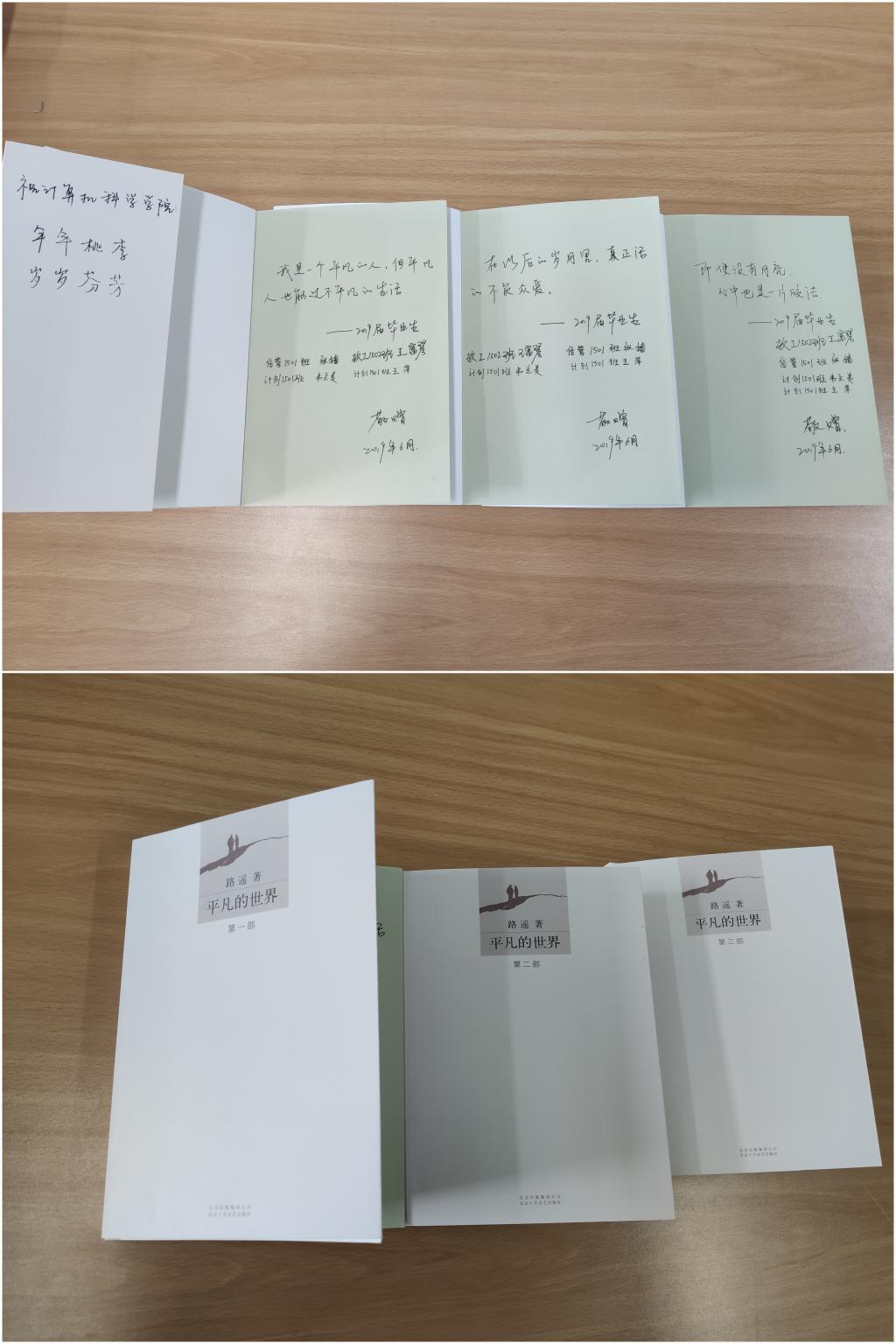 一套《平凡的世界》,并在扉页上写下了对学院的美好祝愿。