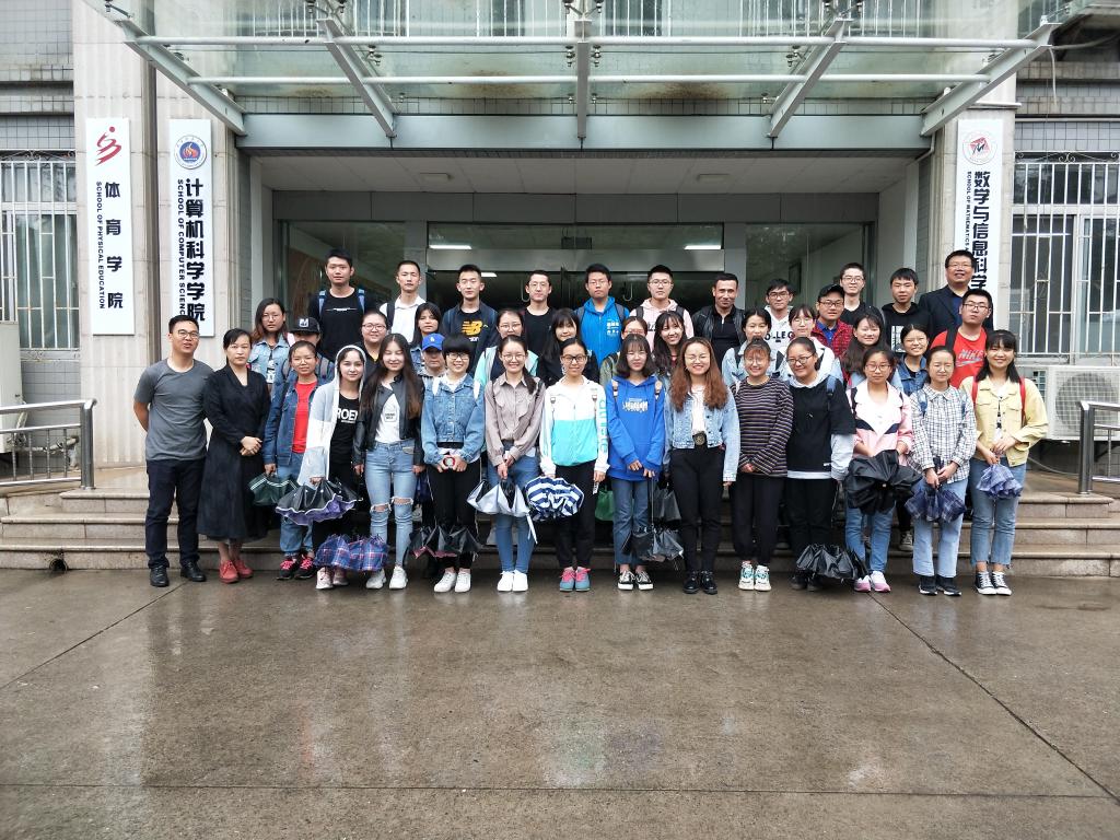 党委副书记袁冰、副院长董春生、辅导员陈应权与计科1701、计科1702班的同学们合影留念。每一位同学都露出了微笑,此次活动在融洽的气氛中结束。活动结束之后,同学们纷纷表达了自己对JBO体育