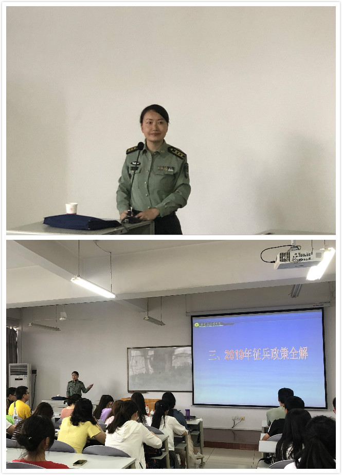 讲座中,南卫华老师以当前国际国内热点为背景,联系我国军队的发展历程、建设成就等,从参军入伍条件、报名流程、优抚优待、成长进步等方面进行了多角度阐述。她表示,参军入伍是大学生增强国家意识、社会责任感和实践能力的重要途径。参军入伍对于大学生提升思想境界、磨炼意志品质、造就健康体魄、练就过硬本领具有重要意义。她希望,广大学子能够积极响应祖国号召,投身军营,奉献青春!