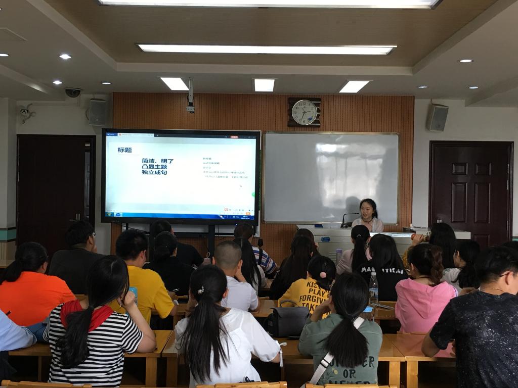 在培训中,马芷璇学姐细致地对新闻宣传工作的各个方面进行了讲解。首先是新闻稿的书写问题,从题目的拟定到结尾的升华,她都列举出了常见的问题和正确的示例,尤其强调了动词的选择并给出大量的词语让同学们体会其中细微的差别。其次是新闻照片的拍摄问题,通过大量的不合理照片,她详细介绍了照片布局的基本原则与相关技巧,指出自己在平时新闻稿的审阅中发现的不足之处和改进方法,鼓励同学们大胆尝试拍摄活动。同时马芷璇特别指出在照片拍摄过程中要抓准时机,拍摄多张照片后再进行筛选。