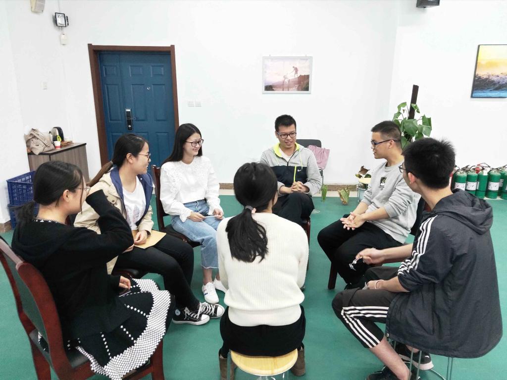 活动室进行团体心理辅导。本次活动旨在缓解学生心理压力,不仅有利于同学之间的相互理解和交流,更培养了大家的默契程度和互助意识。
